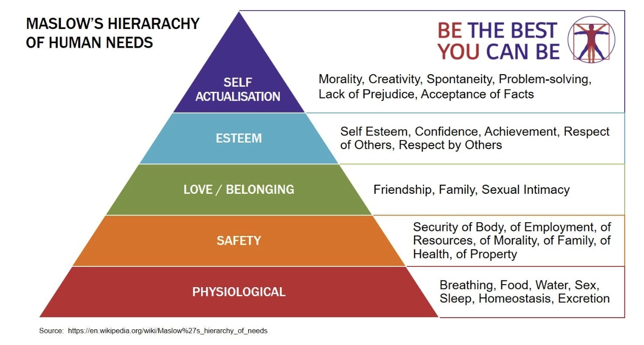 Strongly aligned to Maslow's Hierarchy of Human Needs, I deliver a very realistic approach to a balanced life. Working with your four pillars and your own life story, I encourage and provide ongoing support – enabling you to become strong, mindful, resilient and respectful.